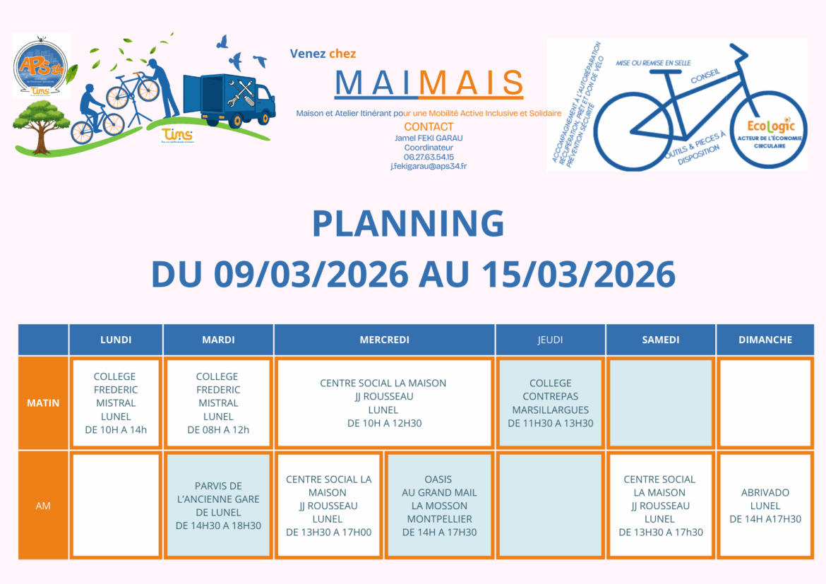 Ces ateliers sont ouverts aux jeunes (accompagnés ou non par l’APS34), ainsi qu’à toute personne souhaitant découvrir l’univers du vélo dans un cadre bienveillant et pédagogique.